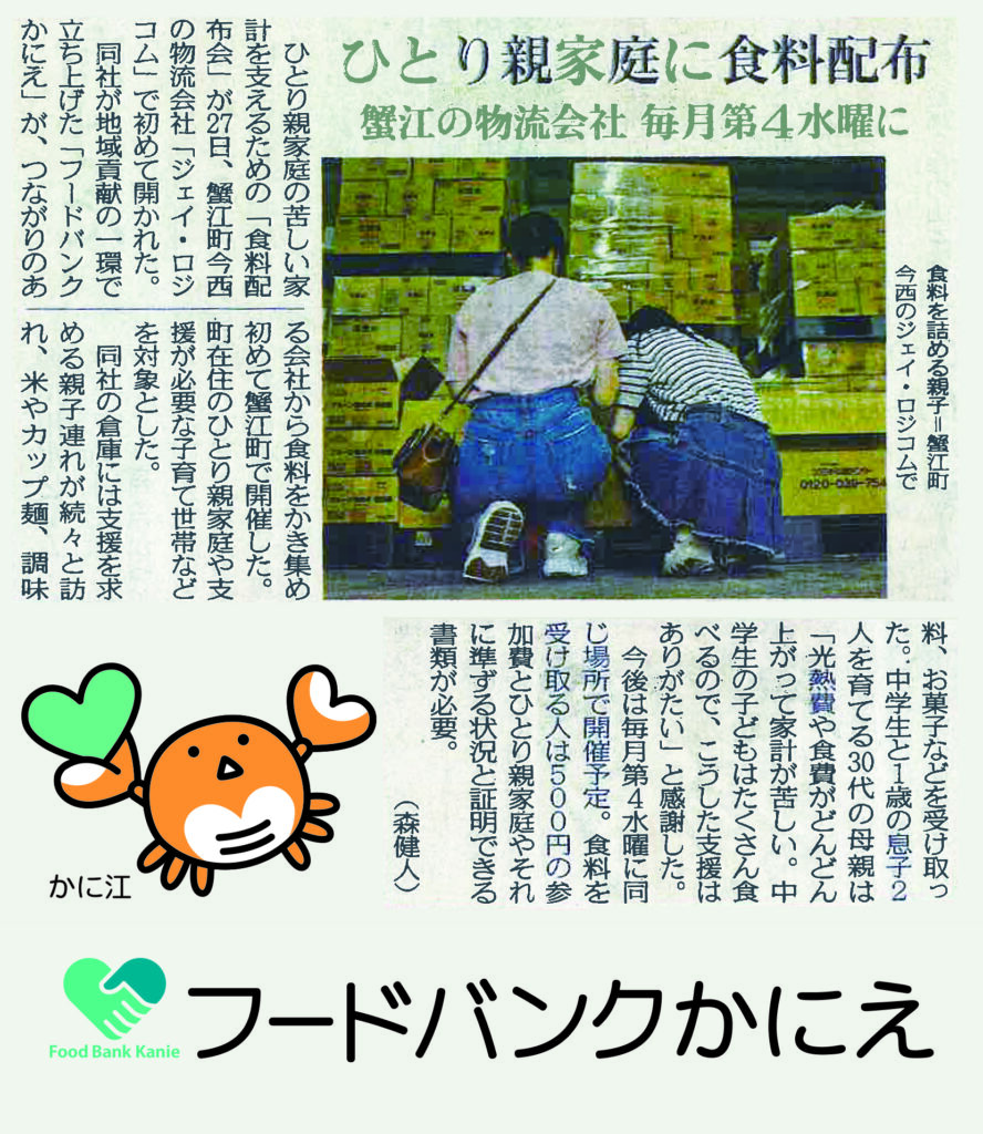 これまで、社会貢献の一環として企業からご寄付いただいた支援品を福祉施設などへ配布する活動を行ってまいりましたが、2025年8月に名古屋西(蟹江)に「フードバンクかにえ」を新たに設立いたしました。